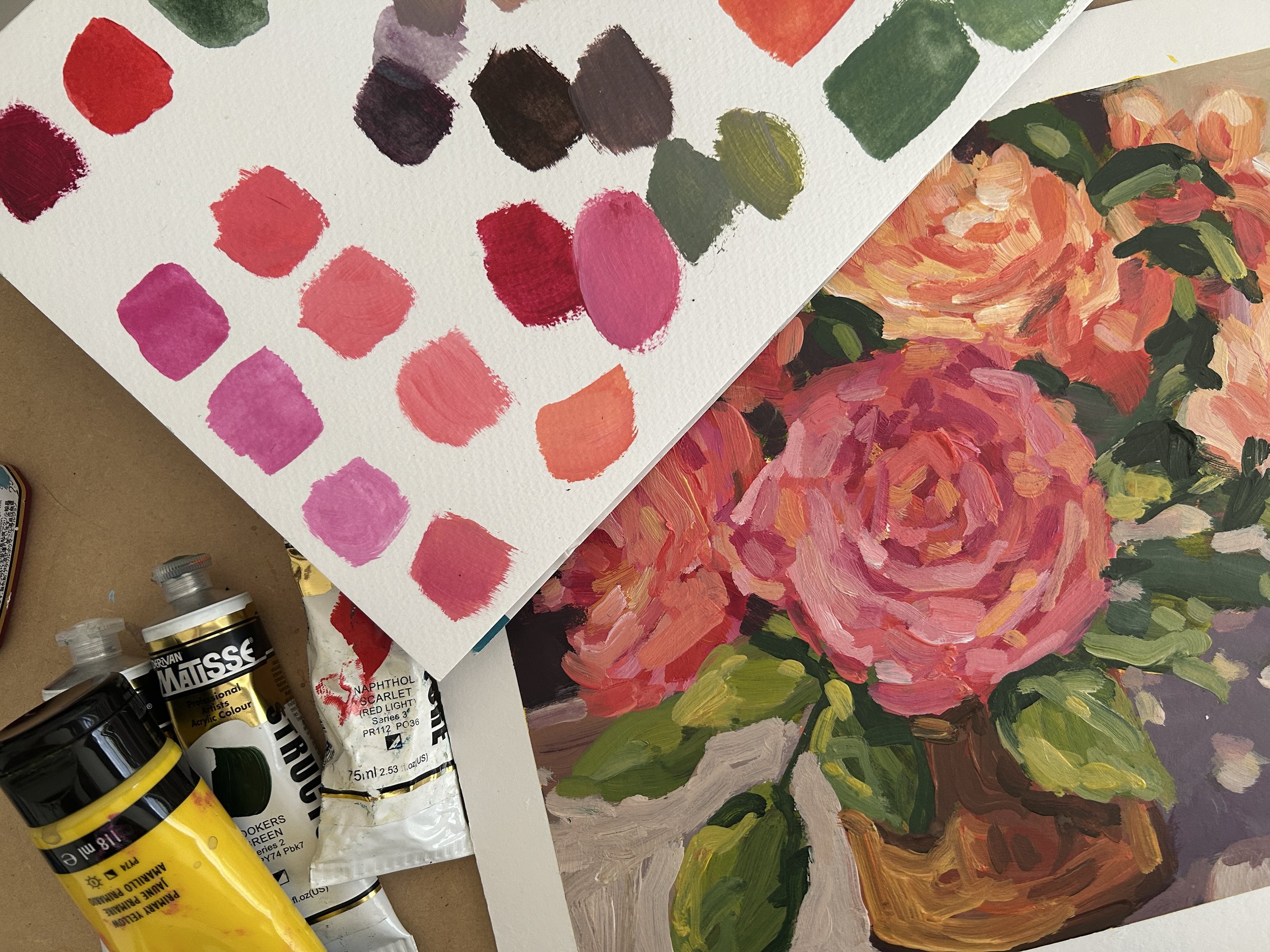 July is nearly here, and that means fresh, vibrant videos are dropping in the Expressive Mess Club! This month, we’re diving headfirst into a rosy adventure with pinks as our star of the colour palette challenge. Join me for a colour-mixing session where I whip up the perfect pink hues and then bring a charming vase of roses to life.