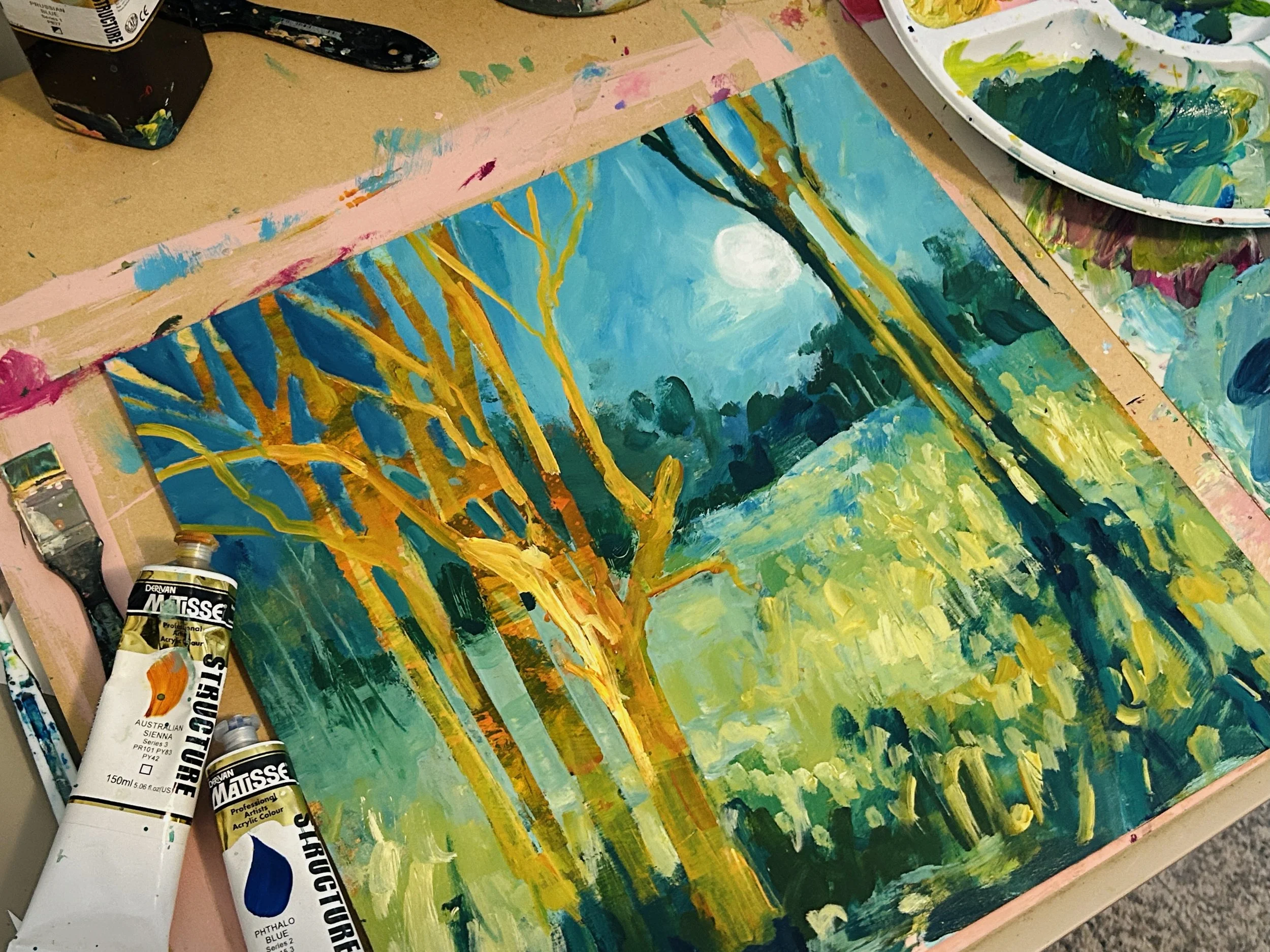 But wait, there’s more! I’ve also crafted a demonstration painting of a dreamscape inspired by one of last month’s mini abstract landscape studies. Get ready for a whirlwind of intuitive painting and fearless acrylic experimentation.