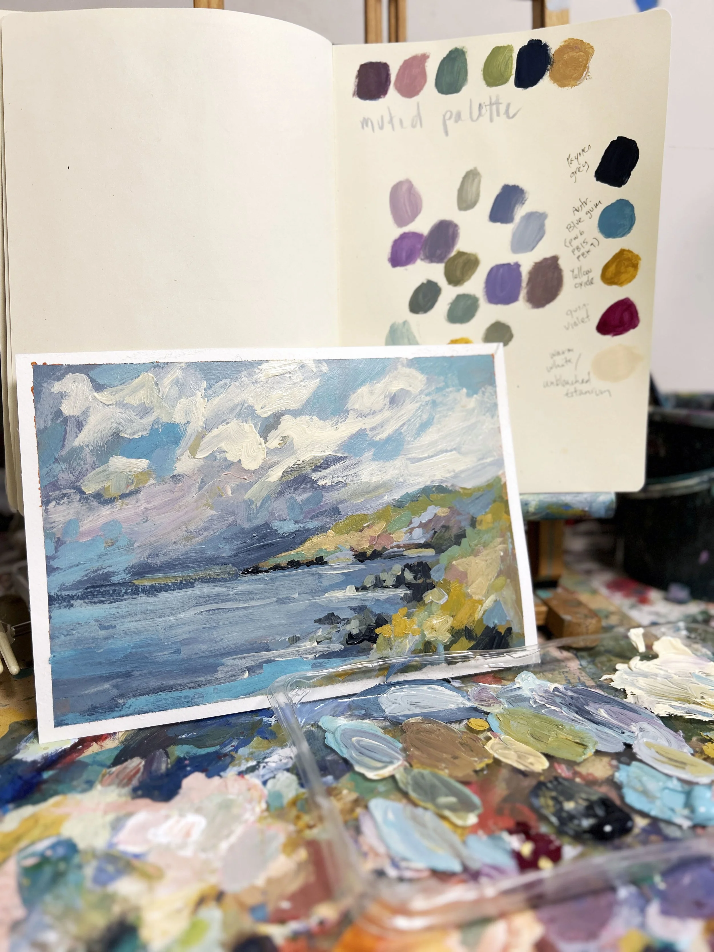 As always, I encourage you to treat this palette as a starting point for exploration. Try using the colours in landscapes, still life subjects, or abstract studies. Play with warm light against cool shadow, soften edges, and allow colours to mingle on the surface. The goal isn’t perfection—it’s discovering how colour relationships can create mood, movement, and atmosphere in your paintings. I can’t wait to see what you create this month!